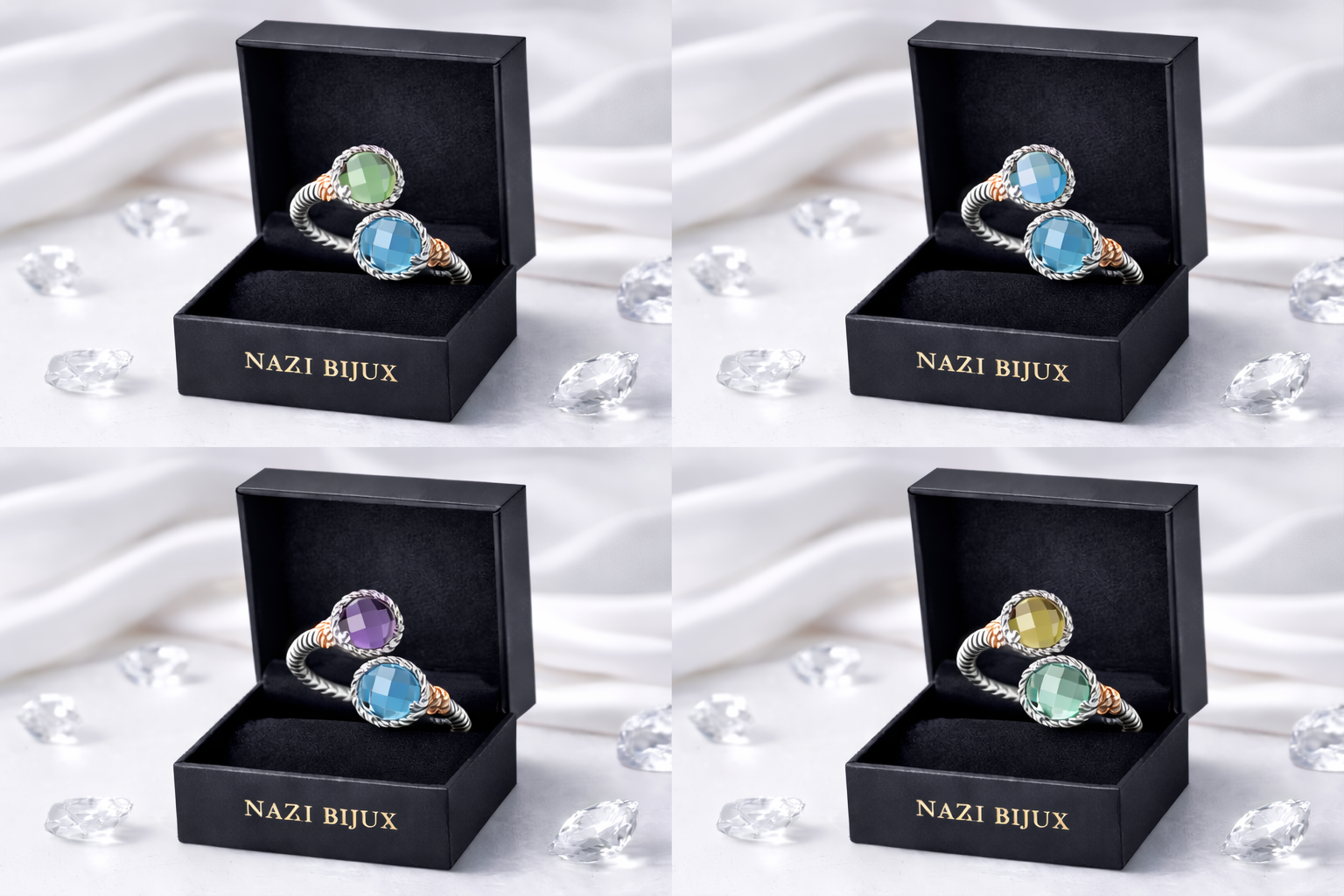 Anello in Argento 925 con Doppia Pietra Naturale – Design Ispirato allo Stile Italiano Nobile | Disponibile su Nazi Bijux